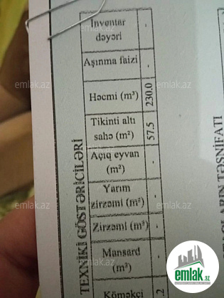 - Əmlakın növüHəyət evi