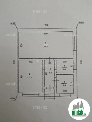 Ev: 50 m² — 2 otaq (otaqlardan biri kiçik)