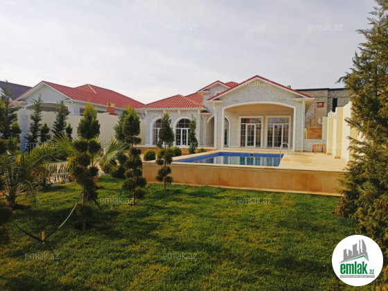 Xezer rayonu Merdekan qesebesi \'\' Veten \'\' restoranina yaxin 3.5 sot torpaq sahesinde 1 mertebeli 150 kvm bag evi satılir. holl ,1 zal , metbext , 3 yataq otagi,2 sanuzeli .qarderob movcuddur.Heyetinde hovuz,bisetka ...