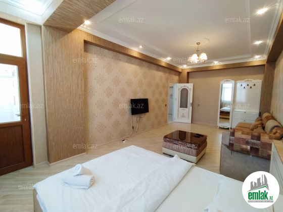 Посуточно! Новостройка. 2-x комнатная,19/11 этаже 95кв.,в центре города, около метро 28 Мая, евро ремонт, встроенная кухонная мебель, мягкая мебель+ 1 двух-спальные кровать, посуда, чистое постельное белье, горячая и холодная вода, газ, TV (кабельное TV), 2 кондиционера ,микроволновая печь. Также быстрый Интернет WI-FI, стиральная и посудомоечная машина, dvd, стерео, вся обстановка для комфортного проживания. Оплата: 40-70 ман.