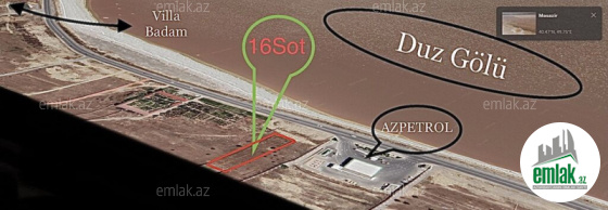 Masazırda Duz Gölü ilə üzbəüz yol qırağı ÖZƏLLƏŞMİŞ/KUPÇALI həyətyanı 16 sot torpaq sahəsi satılır (Azpetrolun yanı)