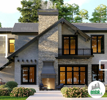 Yuxarı mansard olmağla ev iki mərtəbədən ibarətdir. Bi...