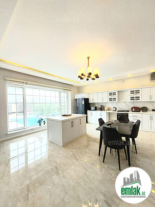 Umumi sahesi 200 kv. 4 otaq-1 zal 3 yataq otagi, isti doseme, 3 sanitar qovsaq, heyetinde mangal, besedka, hovuz ve heyet mebeli movcuddur. Ev mebel ve texnikayla temin olunub. Qazi,suyu ve isigi daimidir