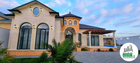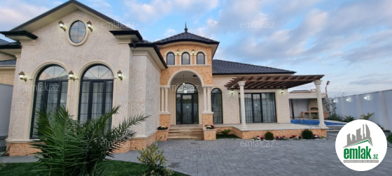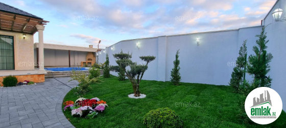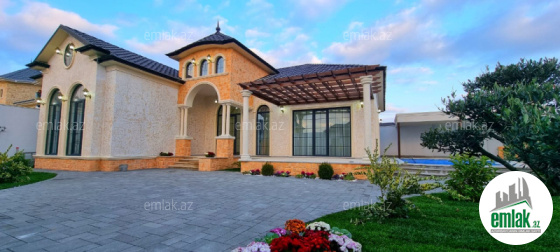 Merdekan qes. Merlin salonunun yaxınlığında yerləşən toskano üslubunda yeni inşa edilmiş 1 mərtəbəli yaşanmamış bag evi satılır, 6.5 sot, 180 kv.m, 1 zal, 3 yataq otaği, dolab otağı, 2 san/qovşağı evin icində və 1 san/qovşağı həyətində yerləşir, ev tam isti döşemelidi, kombi istilik sistemi, hündür tavan 3.8m, qonaq otağının qarşısında qeniş terras yerləşir, həmcinin manqal, daşma tipli filtirli hovuz, avto ücün yer, yer alti su ambarı, pultla idare olunan darvaza. İcməli su xətti cəkilib, qaz, işıq.Senedleri tam qaydasindadir (kupca). Bag yaşayiş massivinde yerleşir ve il boyunca yaşamaq ucun yararlidir. Yolu asvalt örtüklüdür.