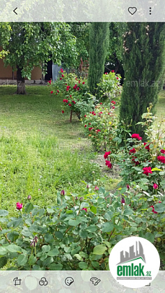 Qəbələnd əyləncə mərkəzinin 1 km-də asfalt yolun kənarında,daimi qazı,suyu,işığı,telefon və interneti var.Həyətdə kürsülü 3 otaq,1 zal,mətbəx, sanuzel,kombi isitmə sistemi olan ev var.Otaqlar,zal,mətbəx çox genişdir.18m uzunluğunda 5m enində,içərisində yay kuxnası olan,yeri metlaxlanmış quraqlıq var.ev təmirlidir.Yaşayış üçün tam yararlıdır.Həyət 14 sotdur.İçərisində meyvə ağacları var.Dörd bir tərəfi hasardır.Evdə hal-hazırda yaşayış var.