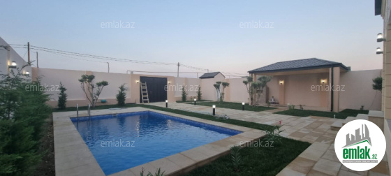 Merdekan qəsəbəsində 6sotda 1 mərtəbəli bağ evi satılır. Ümumi sahəsi 190kv.m olan bu bağda, 4 otaq var: 1genis qonaq otağı, 3 yataq otağı, mətbəx, xoll və 2 s/qovsagi vardir.Heyetinde geniş filtirli hovuzu, bisetkasi ,manqalni, dekorativ aqaclari , sensorla olan gece isiqlari, sanitar qovsagi var.Darvaza pultla idarə olunur.Evin tikintisində keyfiyyətli tikinti materiallarından istifadə edilmiş və çox səliqəli inşa edilmişdir.Qaz,su, işıq daimidir. Senedleri qaydasındadır (Kupca).