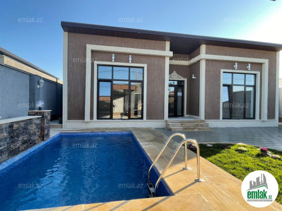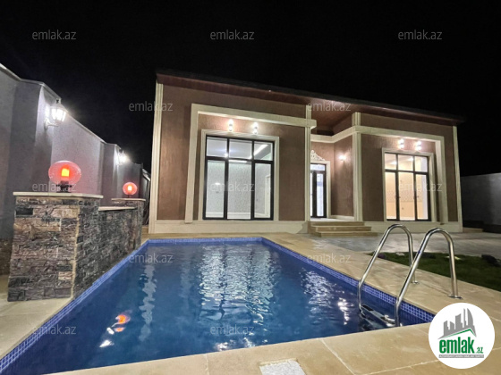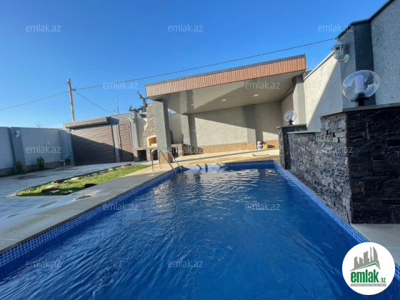 Merdekan qesebesinde tam infrastrukturlu ve pristijli bir mekanda 4 sot torpaq sahesinde insa edilmis 1 mertebeli bag evi satilir.Umumi sahesi 160 kvm olan bu evin 1 zali , 3 yataq otag , 2 sanuzeli movcuddur.Həyətində filtirli hovuzu , bisetkası, manqalni, dekorativ ağacları, pultla idarə olunan darvazası, sanitar qovşağı var.Evin tikintisində keyfiyyətli tikinti materiallarından istifadə edilmiş və çox səliqəli inşa edilmişdir . Qazi , suyu , isiqi daimdir . Istilik sistemi kombidir . Senedleri qaydasindadir (KUPCA) .