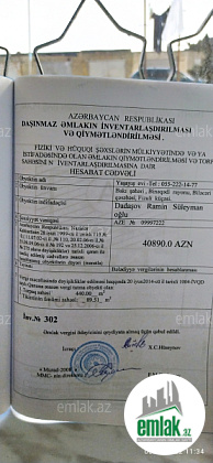 Bineqedi rayonu,Bileceri qesebesinde Fuzuli kucesinde Memmedogullari Avtoservisin yaxinliginda(Sari Market)4,5 sot torpaqda 3 otaqli heyet evi satilir.Dash zaboru,darvazasi,ishigi,suyu,qazi ve kanalizasiya sistemi var.Avtobus dayanacaginin yanindadi.Tek dashla tikilmishdi.Hal-hazirda evde yashayish var.Yaxinliginda mektebler,supermarketler var.Shekillerden de gorunduyu kimi senedleri qaydasindadi,heyeti genishdi.Unvan deqiq olaraq bu linkde gosterilmishdi https://maps.app.goo.gl/UxeY1GWsWhUKSGY4A