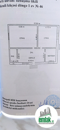 9,5 metr x 12,3 metr , 3 otaq, zal sanitar qovşaq, 4 sot üzərində, sənədi bələdiyyə kupçası, alan adam birbaşa öz adına xüsusi mülkiyyət kupçası alacaq. ilkin 5000 manat+ qalanı aylıq 500 manat olmaqla notariusda nisyə s...
