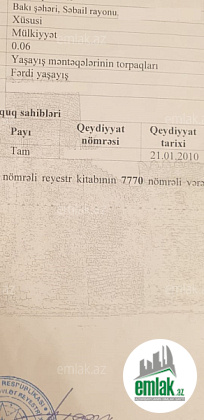 TƏCİLİ ƏLİMYANDI VARİANT.....Səbail rayonu Badamdar qəsəbəsi III massiv ŞIX çimərliyinin yaxınlığında təcili ÇIXARIŞLI (Kupça) torpaq sahəsi satılır. İstənilən təyinat üçün olduqca əlverişli yerdə yerləşir. Torpaq sahəsi 6 ar-dır (sot). Bütün kommunikasiya xətləri hamısı qaydasındadır.