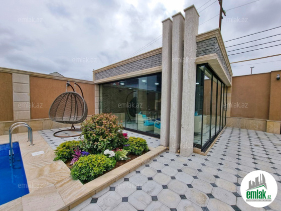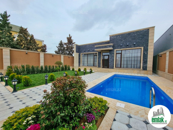 **RUFAT*AYNUR** Продается новопостроенная дача в п. Мардакан, недалеко от BRAVO маркета, в жилом массиве, 4 сота, 130 кв.м, гостинная, 3 спальни, 2 сан/у, кухня, качевственный ремонт, отличный проект, теплый пол, отоп.система комби, газ, питьевая вода, свет, люстры и занавеси, бассейн с фильтром, мангал, летняя кухня, беседка с отопливаемым полом, сан/узел, амбар для воды, ворота жалюзи. Дом пригоден для круглогодичного проживания. Купчая.
