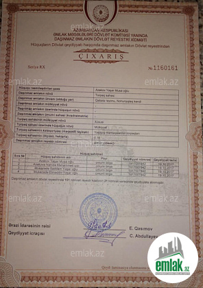 Çıxarış (Kupça)var. İpotekaya yararlıdır.