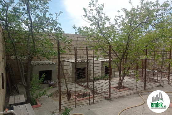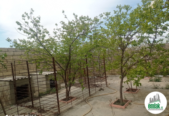 Evin qabağ həyətinə iki maşın yerləşir. Evin arxasında bağda var.