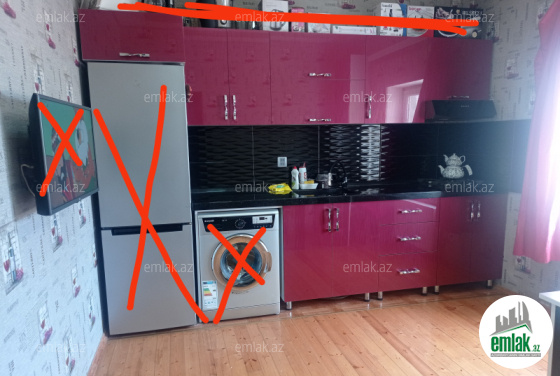 Çıxarışı var. Qaz, su, işıq, kanalizasiya, telefon xət, internet var. Kombi sistemi var(işləkdi) kondisaner var. Bir televizor var. Ev əşyalı satılır mebellər yenidir. Qiymət 55000azn.