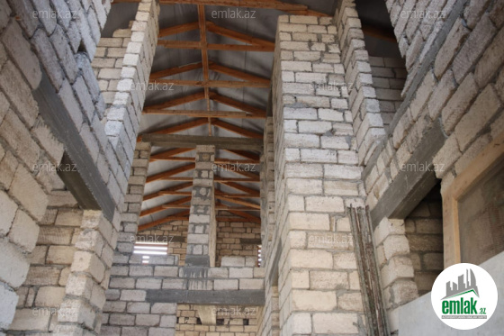 TƏCİLİ SATILIR!!!! 12 sot torpagin uzerinde 2 mertebeli ev yerlesir. Evin umumi sahesi 390 kv.m - dir. Evin alti 60 sm-liq divardan ibaret olan 3 otaqli zirzemidir. Evin 1-ci mertebesinde 2 otaq, metbex, hamam-tualet, dehliz var. Mansarda 3 otaq, qarderob, hamam tualet var. Ev tam tikilidir. Remontu yoxdur. Bayirda shambo ve shambodan eve geden kanalizasiya borusu cekilib. Heyetde 42 metr derinlikden sirin su cixir.