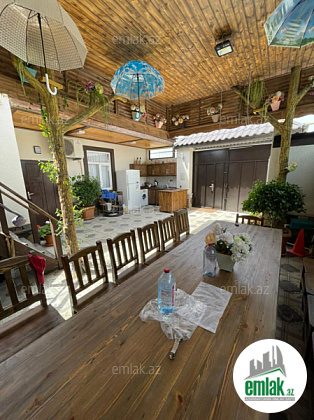 Evin həyəti ümumi 3 sotdur. Bağ evi zal, mətbəx, 2 yataq otağı, holl və 2 sanuzeldən ibarətdir. Hündür tavanları, duş kabinalı sanuzeli, mebelli mətbəxi, quraşdırılmış işıqlandırma sistemi var. Ev yüksək zövq və keyfiyyə...