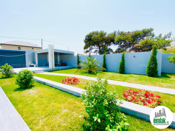 TAM EWYALARI ILE!!! Xezer rayonu Merdekan qesebesi Cem marketden iceri 5 sot torpaq sahesinde insa edilmis 1 mertebeli bag evi satilir.Umumi sahesi 160 kvm olan bu bag evin 4 otagi var.holl ,1 zal,metbext , 3 yataq otag...
