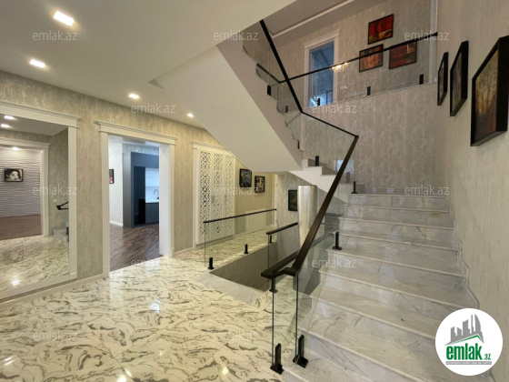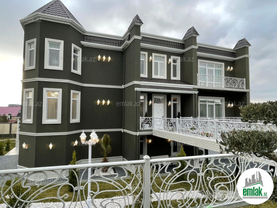 Merdekan Qesebesinde əsas yoldan 400metr aralıda 18sotun icinde inşa edilmiş umumi sahesi 600 kv-m olan 3 mertebeli mertebe arasi tam monolit betondu 7 otaqli dəb dəbəli bağ evi satilir ! Evin tikintisində keyfiyyətli tikinti materiallarından istifadə edilmiş və çox səliqəli inşa edilmişdir.Əlavə olaraq evin alt hissəsində (podval) 2 maşınlıq qaraj mövcuddur.18 sot həyətyanı ərazidə manqal, filterli daşma hovuz, qeyri-adi dizayna malik tikilmiş cam-balkon besetka , axran evi , 2 sanitar qovşağı, dekorativ ve meyve aqaclari , qarajı, mühafizə otağı, sensorla olan gece isiqlari var.Qazi , suyu , isiqi daimdir . Istilik sistemi kombidir . Senedleri qaydasindadir (KUPCA)