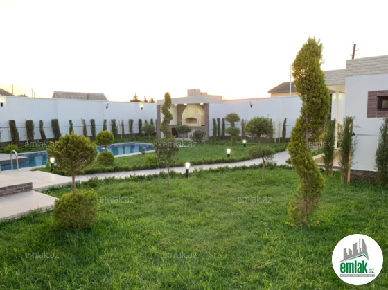 Merdekan qesebesinde**BRAVO** marketin yaxinliginda muasir uslubda insha edilmish bag evi satilir.Torpaq sahesi 6.5 sot,tikili sahesi 230 kv.m,3 yatag otagi,2 sanuzel var.Heyetinde mangal,filterli hovuz,qaraj, cambalkon ,həyətdə ayrica sanitar qovşaq var.Həyət gecə işiqlandirmasi ilə təchiz edilib və dekorativ ağaclarla əhatələnib.evin fasadi dekorativ təbii daşla üzlənmişdir.Qazi ,suyu , isiqi daimdir . Istilik sistemi kombidir .Senedleri qaydasindadir (KUPCA)