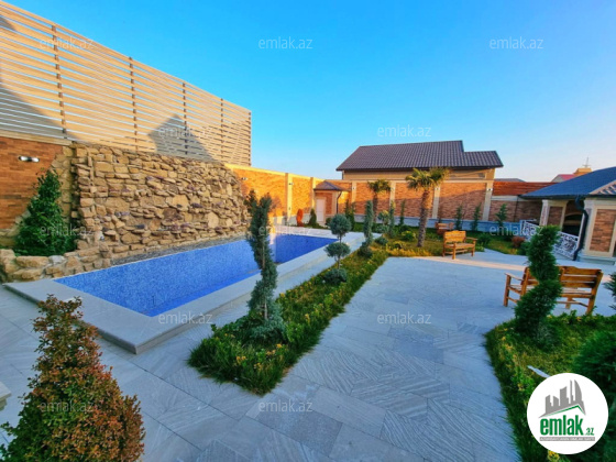 Merdekan qesebesinde yerləşən yeni inşa edilmiş 2 mərtəbəli bag evi satılır, 8 sot, 250 kv.m, 1 zal, 5 yataq, 2 san/qovşağı, isti döşəməli, hündür tavan, zövqle temir edilib, kombi istilik sistemi, texniki otaq, həyətində filtirli hovuzu, yay mətbəxi manqalı ilə, söhbətqah, san/qovşaq, acıq qaraj, həmcinin yer alti su ambarı, icməli su xətti, qaz və işıq daimidir.Bag evi yaşayış massivində yerləşir və il boyunca yaşamaq ücün yararlıdır. Yolu asvalt örtüklüdür.Sənədləri qaydasındadır (KUPCA)