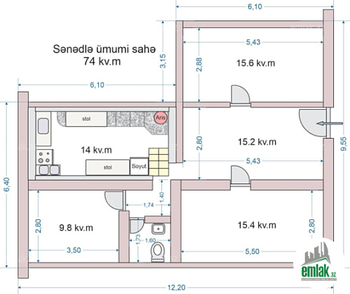 umumi sahesi 80 m2 olan 4 otaqli obyektdir