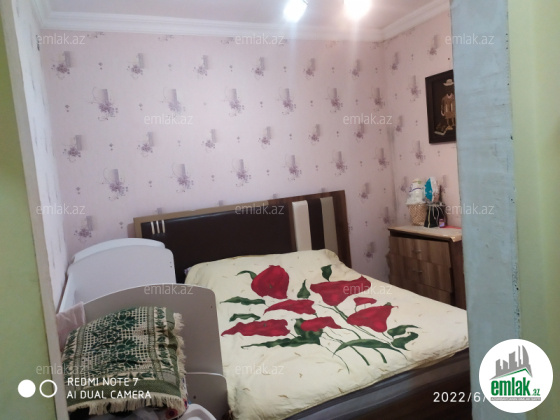 Ev: 50 m² — 2 otaq (otaqlardan biri kiçik)
