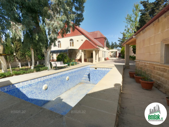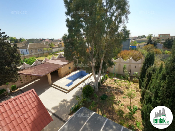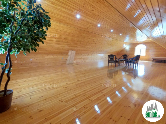 Xəzər rayonu Mərdəkan qəsəbəsi, Bravo marketin arxasında, Teymur Quliyev sanatoriyaya YAXİN 12 sotun içində 400 kv m sahəsi olan 2 mərətəbə+mansar bağ evi bütün əşyaları ilə birlikdə satılır. Həyətdə 2 maşınlıq qaraj, basseyn, mühafizəçi üçün otaq, sanuzel, hamam, fontan, 8 ədəd mühafizə kameraları, pultla idarə olunan darvaza, avtomatik yanıb-sönən həyət işıqları, 90 metrdən quyu suyu, besedka, yay mətbəxi, çox illik ağaclar (palma, şam, çinar, evkalipt, meyvə ağacları). 1-ci mərtəbədə mətbəx, qonaq otağı, sanuzel, 2 yataq otağı, 2-ci mərtəbədə 2 yataq otağı, qonaq otağı, sanuzel, mansar ümumi sahədən ibarətdir. 5 ədəd kondisioner mitsubishi, 4 ədəd TV, 2 ədəd soyuducu, qabyuyan, paltaryuyan, yataq və qonaq otağı dəstləri, tennis stolu və sair bütün əşyalar qalır. Qaz, su (dövlət xətti, əlavə quyu suyu da var), işıq daimidir, krosna TV, telefon, internet hamısı var.SENED KUPCA EV İPATEKAYA YARARLİDİR OFİS HAQQİ 1FAİZ
