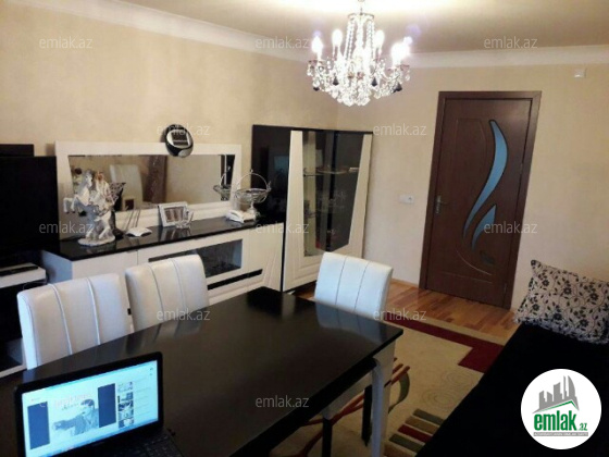 Mərkəz plazanın yanında Azzaya birləşik binadır. Tam mərkəzdə yerləşdiyi üçün hər yerə: baxça, məktəb, xəstəxana, ASAN xidmət, avtovağzal, bazar və s. yanındadır. Skvaznoydur, əla təmirli, 4/5-ü, 3 otaq, orta ev, daş binadır. Binanın həyətində maşın saxlama yeri, ətrafda kamera çəkilişi, binanın qapızı seyf qapıdır. Evin Kupçası, qazı, suyu, işığı daimidir. Kondisioner, televizor, paltaryuyan, bahalı qonaq otağı mebelləri, kreslosu, kravat və şkaflar, kombisi, kuxna mebeli daxil 88min azn. Evin əlavə olaraq bir yataq otağı kəsilərək mətbəxə birləşdirilmiş, və yeməy otağı yaradılmışdır. İstəyən ora qapı qoyub əlavə kiçik uşaq otağı da düzəldə bilər. Yalnız əşyalı satılır və evdə daim ailə yaşıyıb. Qonşular mehriban, xeyrə-şərə dost insanlardır.