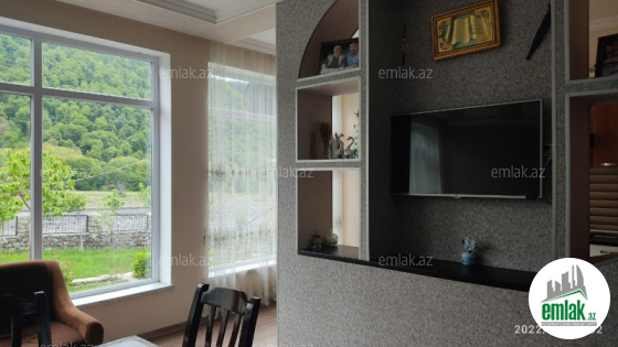 Ev Ağçay kəndi ərazisində,mənzərəsi gözəl olan yerde yerlesir.Her şəraitli yeni tikilidir.Manqal samavara həyətində besetkası var.kombi sisstemidir. mansard hissede bir yataq və bir qonaq otagı balkon var. birinci mərtəbədə zal iki yataq otagı mətbəx mövcuddur. Həm əsas yola yaxın hem de iki çayın qovuşdugu yerde çayın kenarındadır.
