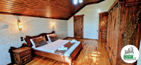 ÇOOX TƏCİLİ! ƏLA FÜRSƏT! Ev sahibinin xaricə köçməsilə əlaqədar olaraq Qəbələ rayonunda çox gözəl zövqlə təmir olunmuş villa dəyərindən ucuz qiymətə satılır. Villa Qəbələ rayonunda “Yeddi gözəl hoteli”nin yaxınlığındadır. 13 sot torpaq sahəsi var. Həyətdə 20 növ meyvə ağacı, 3 növ yolka ağacı, qızıl güllər, 9 metrlik yolka ağacı var. Filtrli hovuzu və saunası mövcuddur. Evin sahəsi 240 kvadrat metrdir. 4 yataq otağı, 4 sanitar qovşaq, 1 zal və mətbəxdən ibarətdir. Terası var. Ayrıca istixanası var. Evin yataq və mətbəx mebelləri xüsusi üsulla taxtadan yığılmışdır. Həyətdə əl evi, sanitar qovşaq mövcuddur. Ev bütün əşyaları (mebellər, avadanlıqlar, samovar, manqal) ilə birlikdə satılır. Maklerlər (vasitəçi, agent) qətiyyən narahat etməsin!