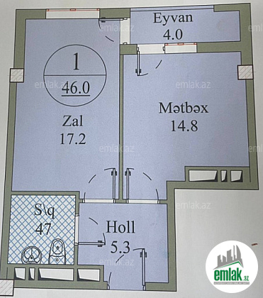 ✔Mənzilin sahəsi 46 kv/m2.