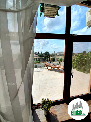 1 zal, 4 yataq otağı, 1 mətbəx, 2 sanuzel, 1 kicik 2 boyuk balkon (veranda). Qapılar ve nərdivan təmiz taxtadandır.
