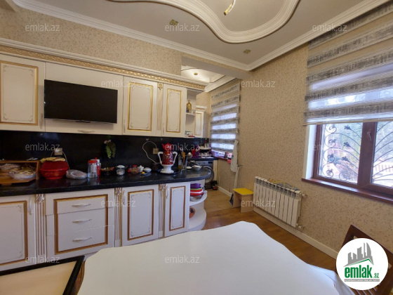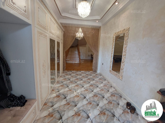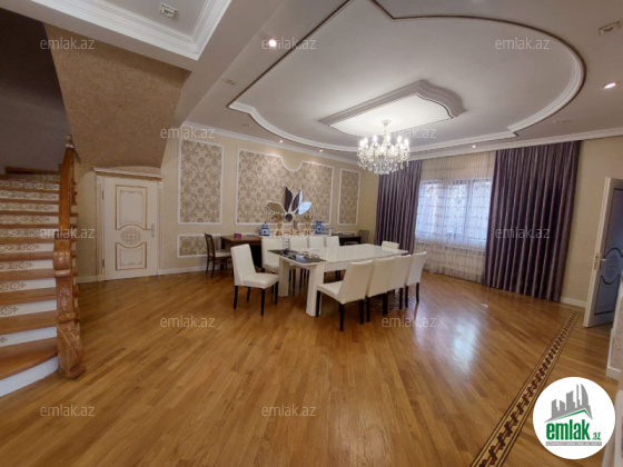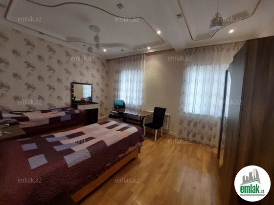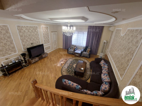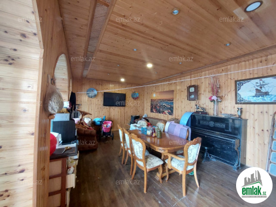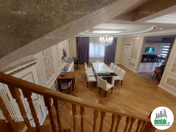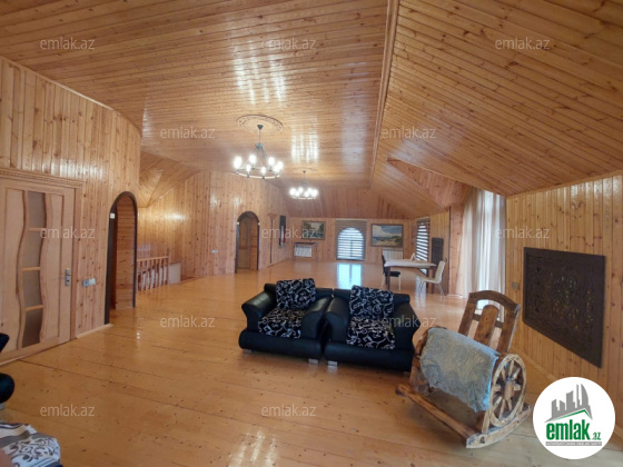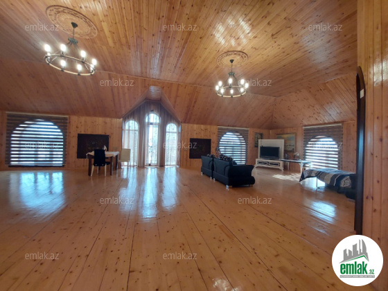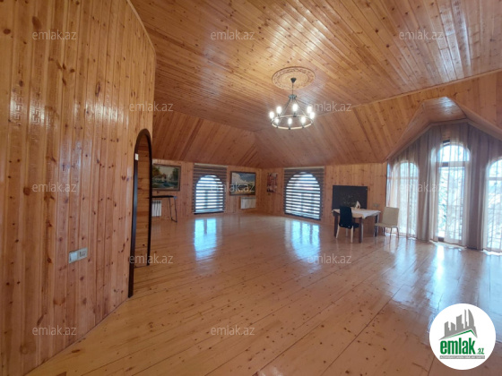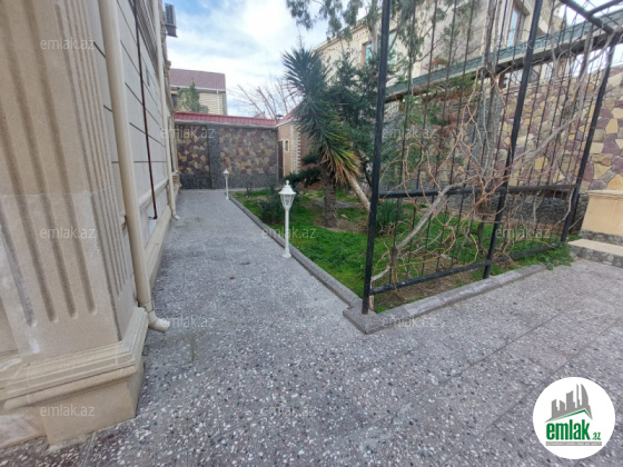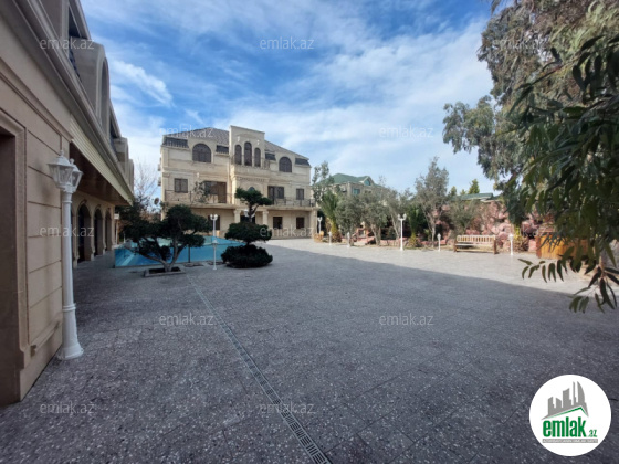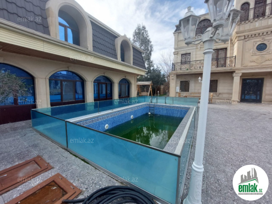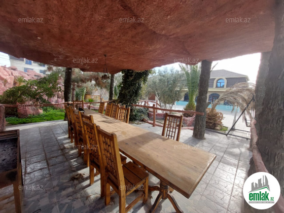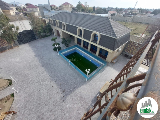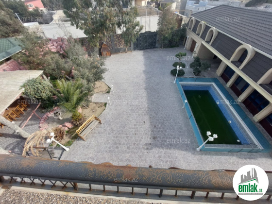 Həyətinin ümumi sahəsi 13 sot, tikililərin sahəsi 600 m2-dir. Əsas binanın 1-ci mərtəbəsində böyük zal, mətbəx, yataq otaqi və sanitar qovşağı var. 2-ci mərtəbədə 4 yataq otağı və 4 sanitar qovşağı var. Bina tam avadanliqla techiz olunub mebel. Kombi sistemi, işığı, qazı daimidir. Həyətdə çoxlu dekorativ və meyvə ağacları əkilib. ev esyali satilir heyetində şəlaləsi +manqalnisi +hovuzu var