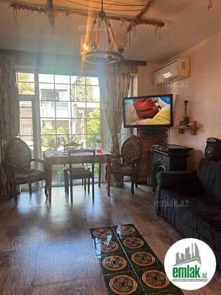 Ev kombi sistemi mətbəx mebeli kondisioner ilə təchiz olunub.öz evimdir və qoşa daşla tikilib qaz su işıq daimidir.torpağın və evin sənədi kupça yəni çıxarışdır. Həyətdə müxtəli meyvə ağacları mövcuddur....