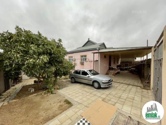 Şamaxı ş.Qızmeydan kəndi.31sotun içində kürsülü,4otaqlı həyət evi.geniş bisetkası,işığı,qazı,meyvə ağacları var.Artezian və quyusu-su çəni var.