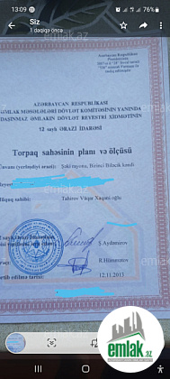 Şəki şəhəri, Biləcik kəndində asvalt yoldan 400 metr aralı, kəndin girişində, səfalı məkanda 15 sot sənədlə, 12 sot artırma ilə, daimi qazı işığı suyu olan, içərisində 60 topa yaxın fındıq agacları olan bağ sahəsi