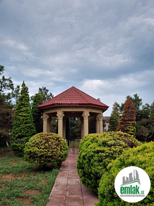 Sanitar qovşaq, qonaq otağı, hovuz, 2 mərtəbəli nəzarətçi evi, dekorativ ağaclar, besetka