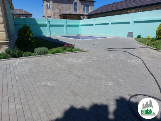 Əlavə olaraq torpaq sahəsində 7m*4m ölçüdə filtrli və mozaikalı hovuz, 8 tonluq yeraltı ehtiyat su çəni var. Kanalizasiya, qaz, işıq, su xətti var.