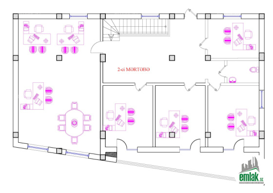 2-ci mərtəbədə dörd kabinet otaq və əlavə sanitar qovşağı var.