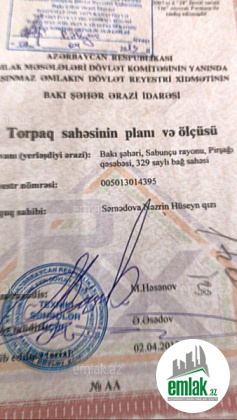 Ünvan: Baki ,Sabuncu rayonu,Pirshagi qes,329 sayli bag sahesi