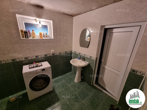 Ev 2 mertebedi. Heyetinde 4 tonluq su anbari var. 48 km² qaraji var, meyve agaclari var. Qazı, suyu, işığı daimidi. Eve baxmaq ucun axsam saat 6 dan sora gele bilersiz.233 nomreli mektebin yani