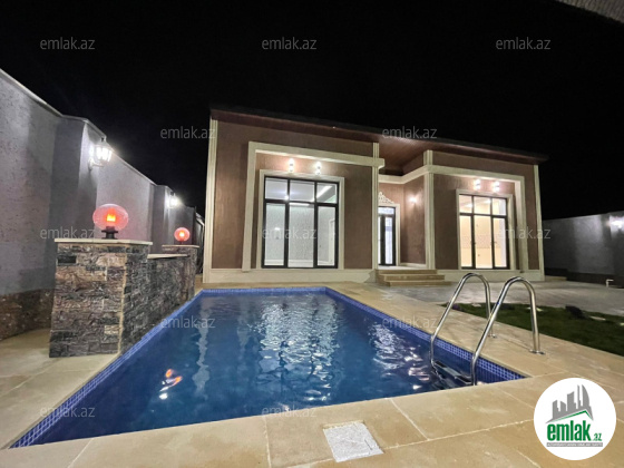 Merdekan qesebesinde tam infrastrukturlu ve pristijli bir mekanda 4 sot torpaq sahesinde insa edilmis 1 mertebeli bag evi satilir.Umumi sahesi 160 kvm olan bu evin 1 zali , 3 yataq otag , 2 sanuzeli movcuddur.Həyətində filtirli hovuzu , bisetkası, manqalni, dekorativ ağacları, pultla idarə olunan darvazası, sanitar qovşağı var.Evin tikintisində keyfiyyətli tikinti materiallarından istifadə edilmiş və çox səliqəli inşa edilmişdir . Qazi , suyu , isiqi daimdir . Istilik sistemi kombidir . Senedleri qaydasindadir (KUPCA)