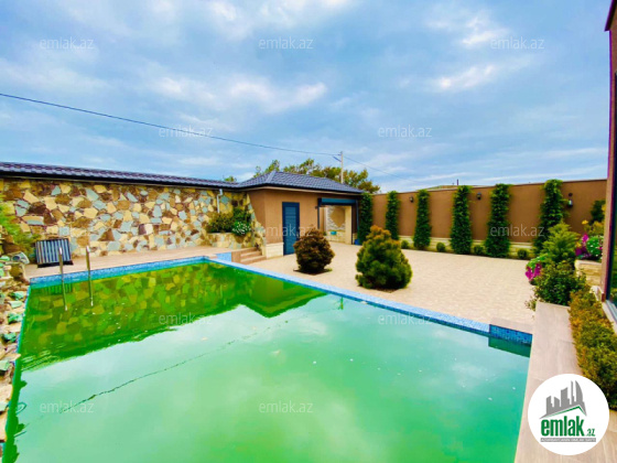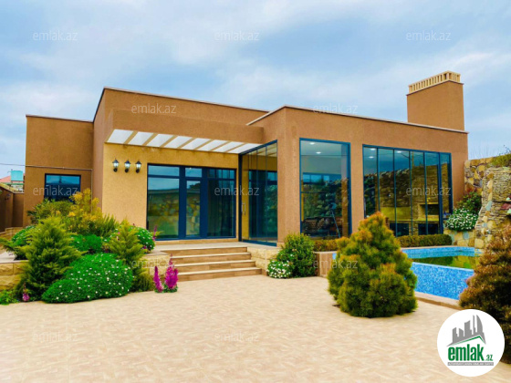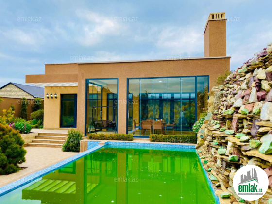 Xezer rayonu Merdekan qesebesinde tam infrastrukturlu ve prestijli bir erazide 4 sot torpaq sahesinde insa edilmis 1 mertebeli bag evi satilir.Umumi sahesi 160 kvm olan bu evin 1 zal studiometbex , 3 yataq otag , 2 sanuzeli movcuddur.Həyətində geniş filterli hovuzu, şəlaləsi, besedkasi , manqalni, dekorativ ağacları, pultla idarə olunan darvazası, sanitar qovşağı var..Evin tikintisində keyfiyyətli tikinti materiallarından istifadə edilmişdir..