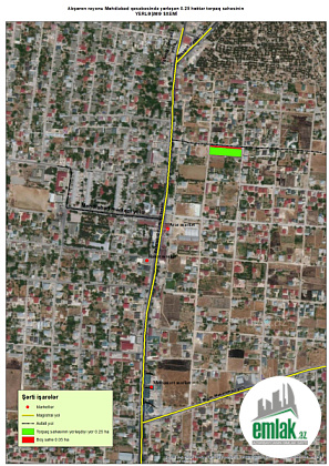 Sumqayit yolunun usdunde saray postuna catmamis Azpetrolun yan kucesinde esas yoldan 600 metr iceride tam yasayis massivinde 10.4 sot hasara alinmis torpag sahesi tecili deyerinden asaqi qiy...