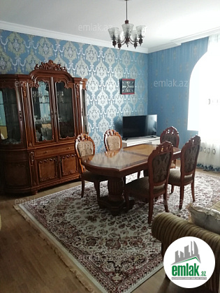Salam.ev merkezde yerlesir.evin her seraiti var.kombi.kondisioner.isti-soyuq su.suretli optik internet.qaraj.besedka.2 hamam 2 tualet.smart tv ve s.heyetde 15 tonluq su quyusu ve qidrafor var 2 ay evi su ile temin ede biler.ayliq 600 azn.ancaq aile ucun.il boyu.qiymet sondu.