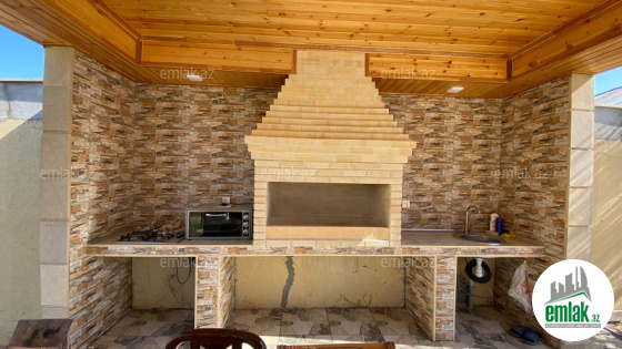 Açıq eyvanı var.Baseyn,manqal,terast cam balkon.Mətbəx mebeli daxil.