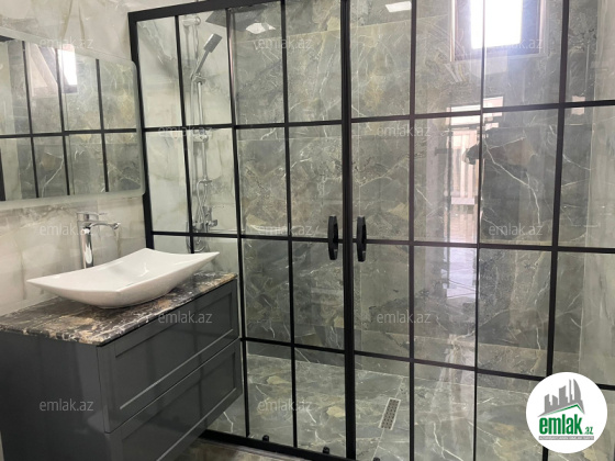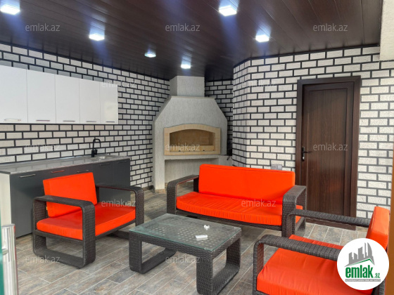 Açıq eyvanı var.Baseyn,manqal,terast cam balkon.Mətbəx mebeli daxil.