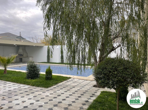 Merdekan qesebesknde esas yola yaxin 5.5 sotun icində modern üslubunda yeni inşa edilmiş bağ evi satilir.Ümumi yaşayış sahəsi 220 kv.m. olan bağ evində 1 genis qonaq otağı,mətbəxt, 4yataq otağı,3 sanuzel və geniş hol mövcutdur. Həyətdə genis hovuz, 3masinliq qaraji,manqal, besetka və dekorativ ağaclar var .Su, qaz, işıq daimidir.Sənədleri qaydasındadır.Kupca