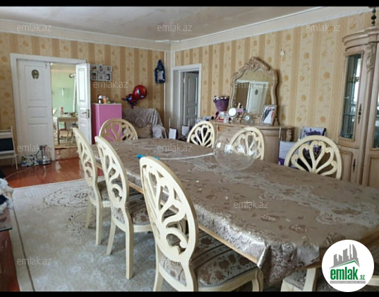 yoldan 100 metr arali,6 sot torpaqda tikilmiş,6 daş kürsülü,120 kv.m.4 otaqlı,əla təmirli ev.Ev əşyalarla bir yerdə satılir(soyuducu,paltaryuyan maşın,...