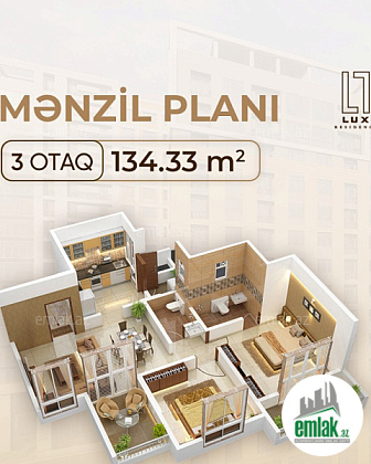 Möhtəşəm 3 otaq studia mənzil!